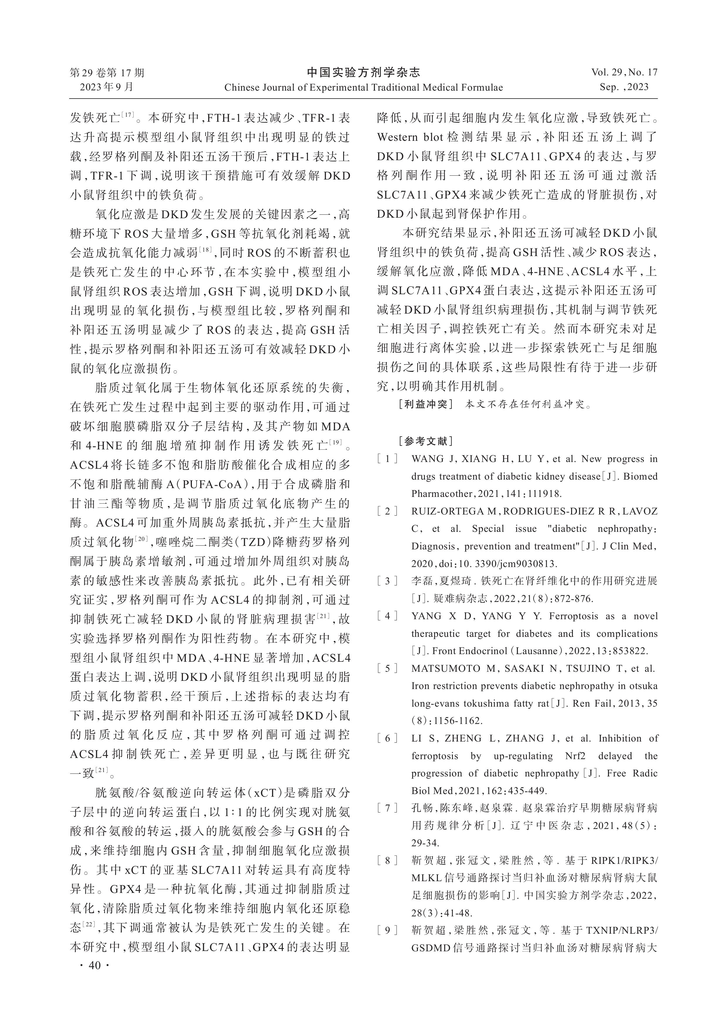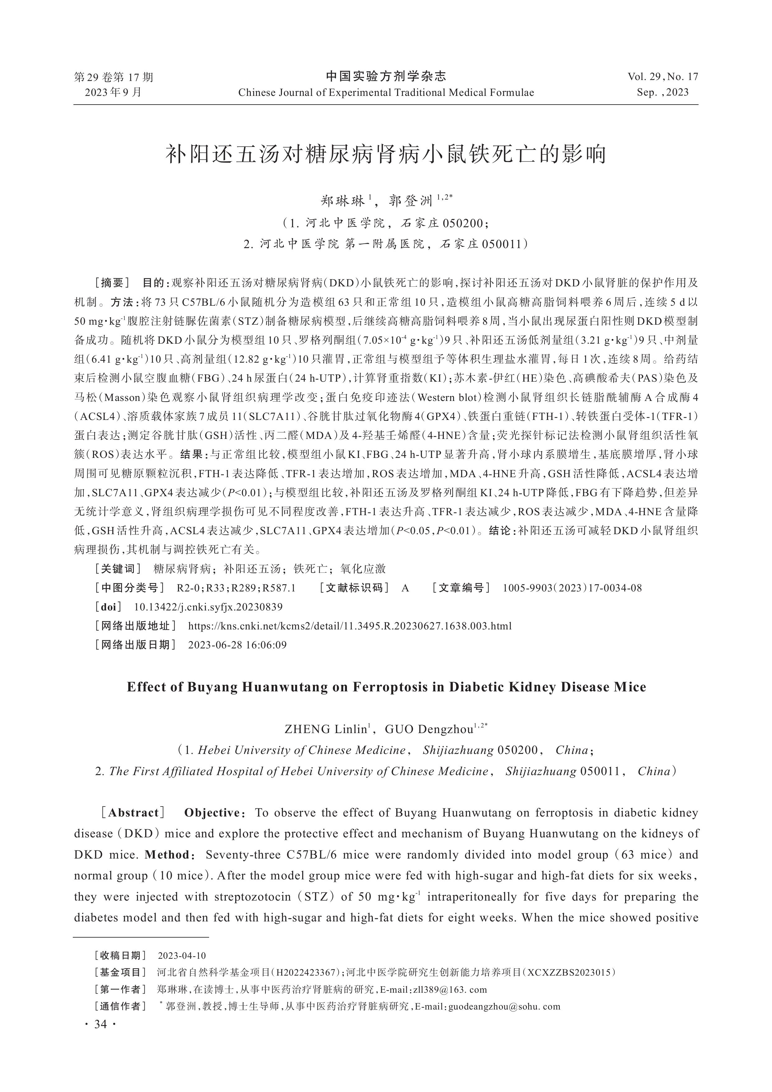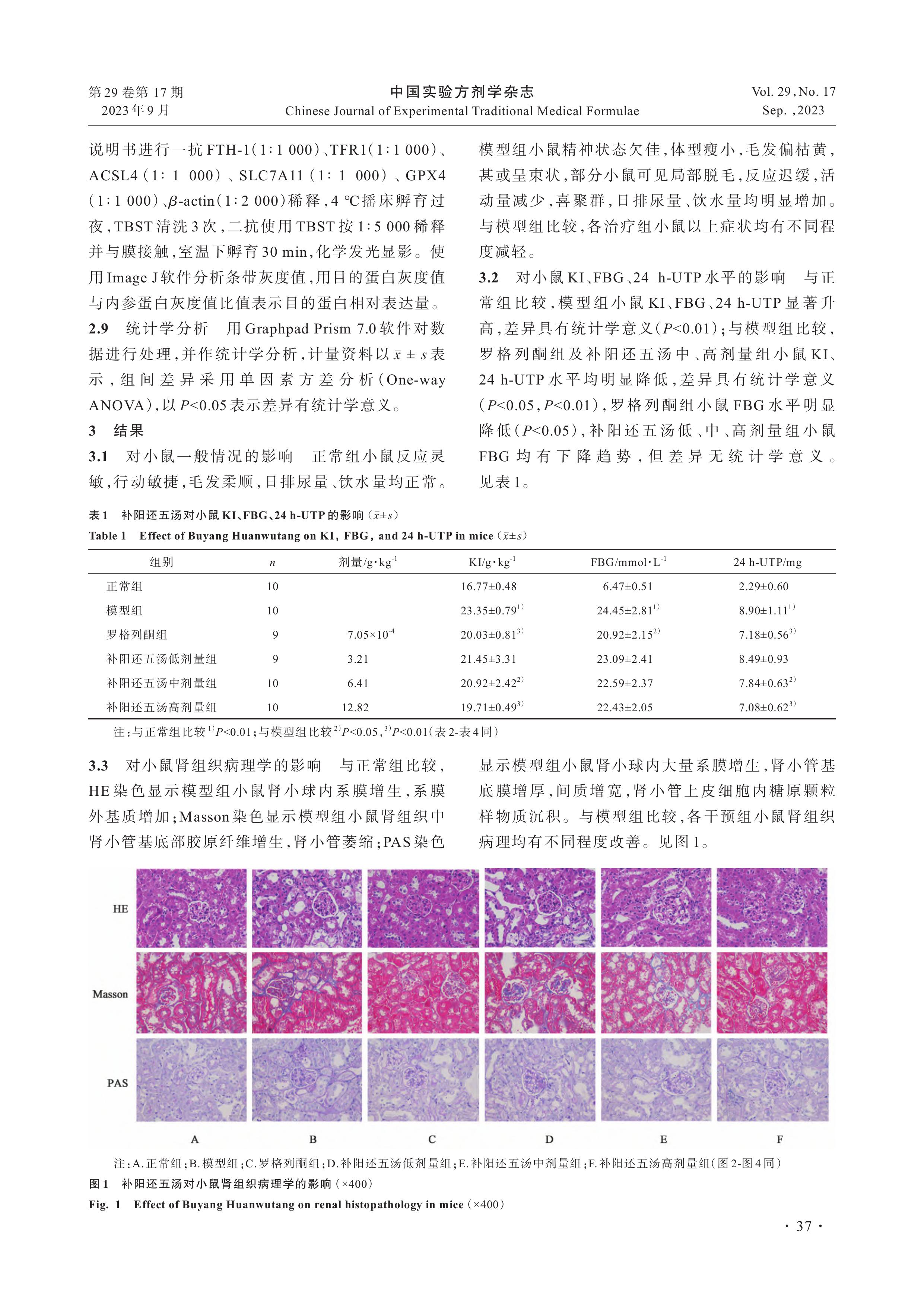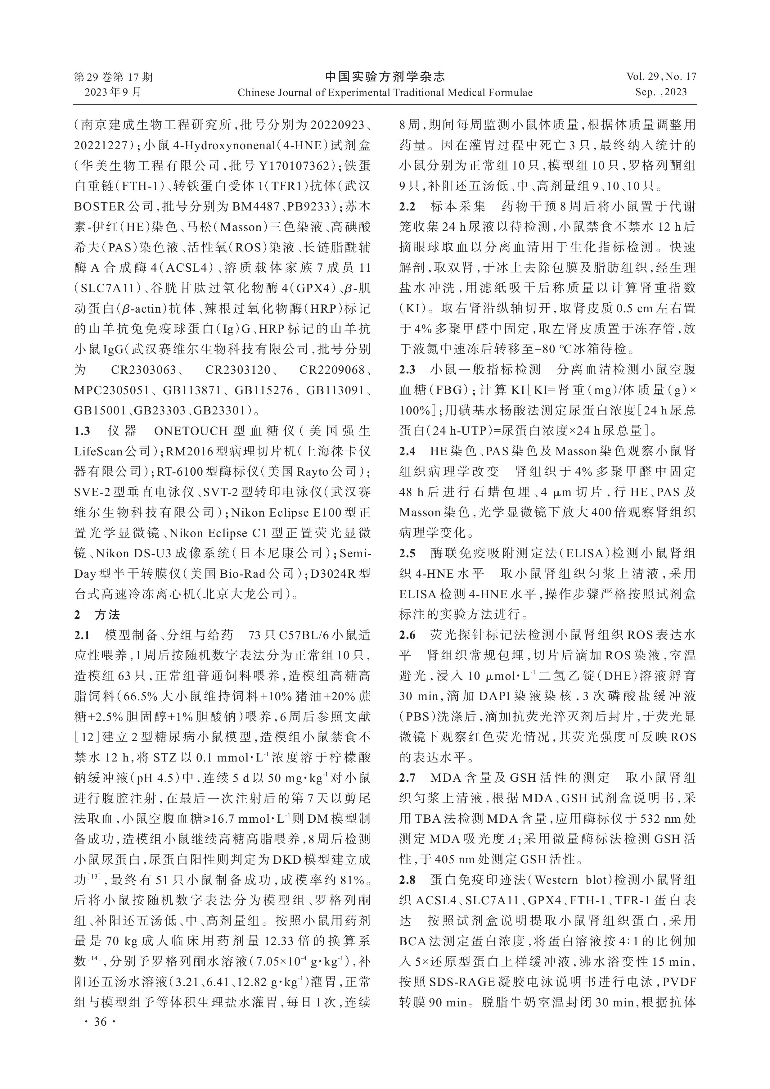 补阳还五汤对糖尿病肾病小鼠铁死亡的影响