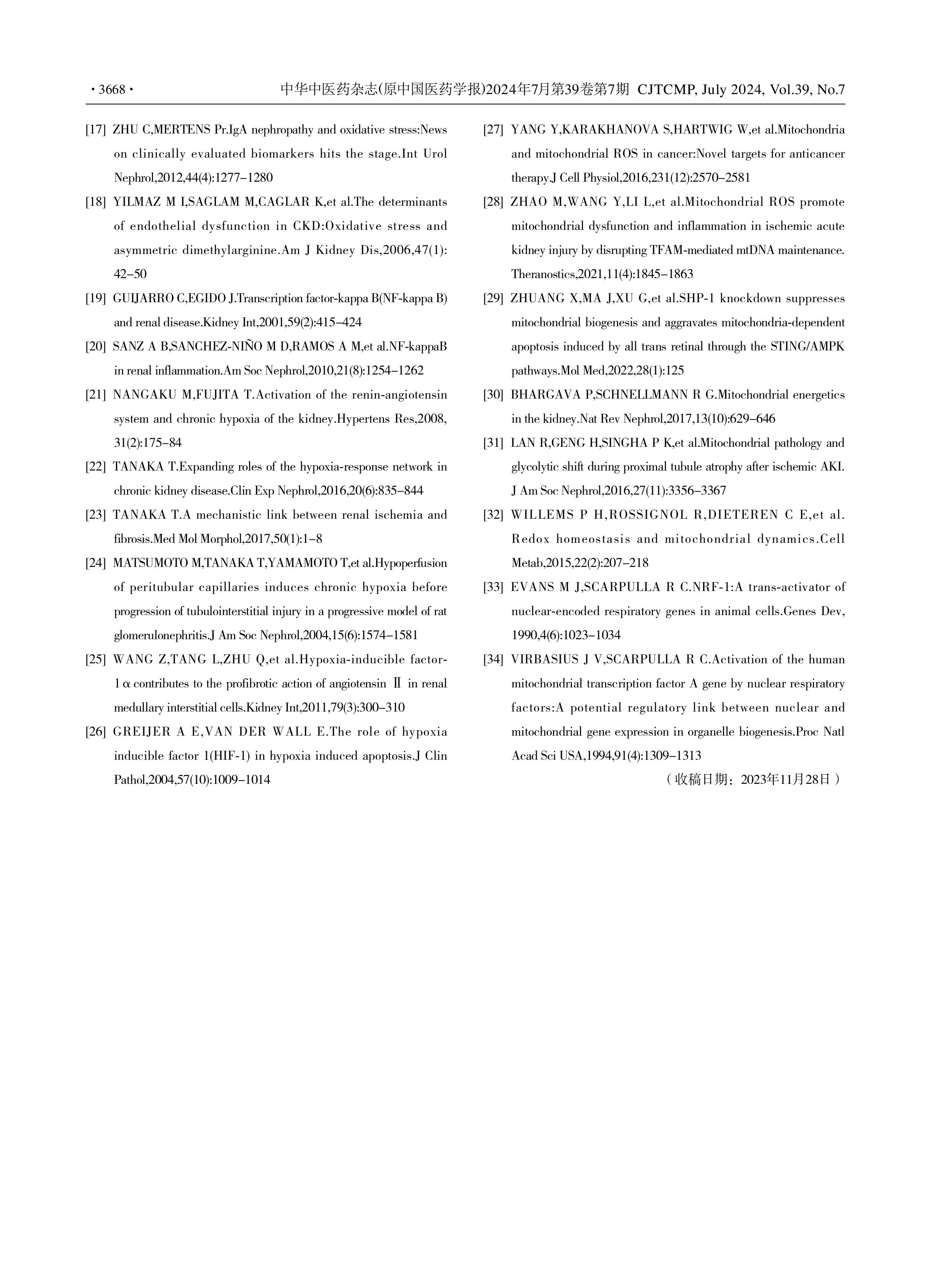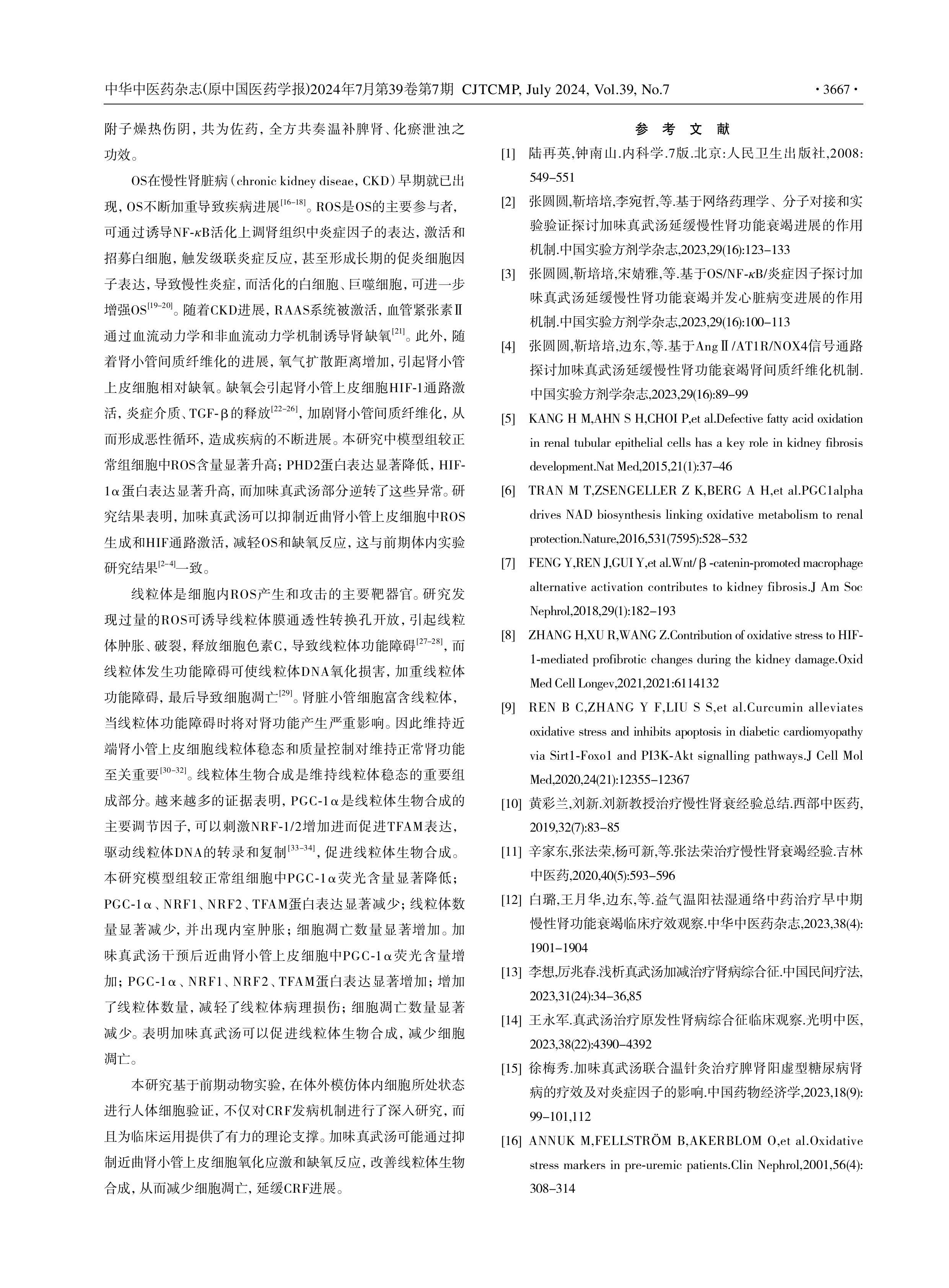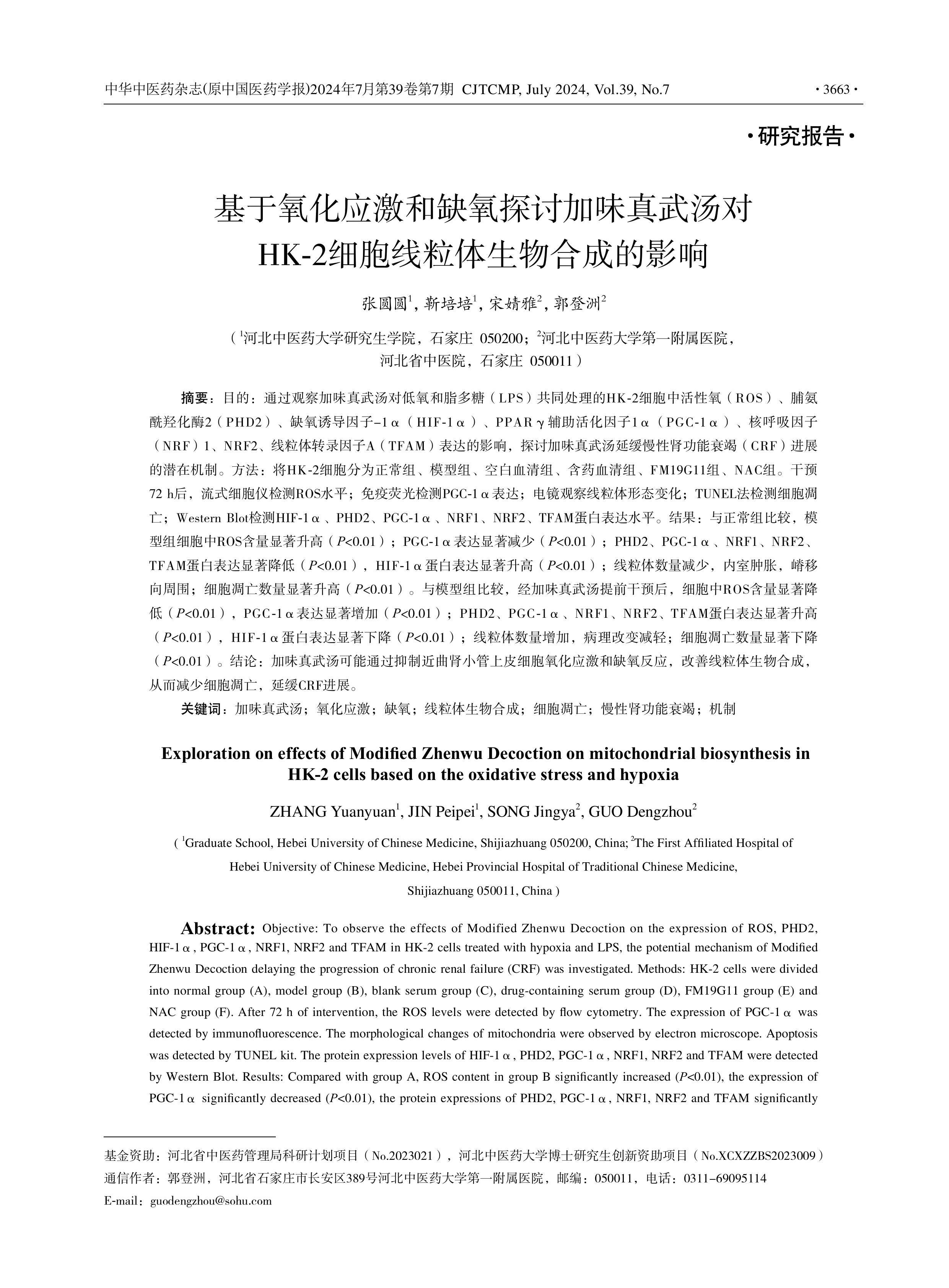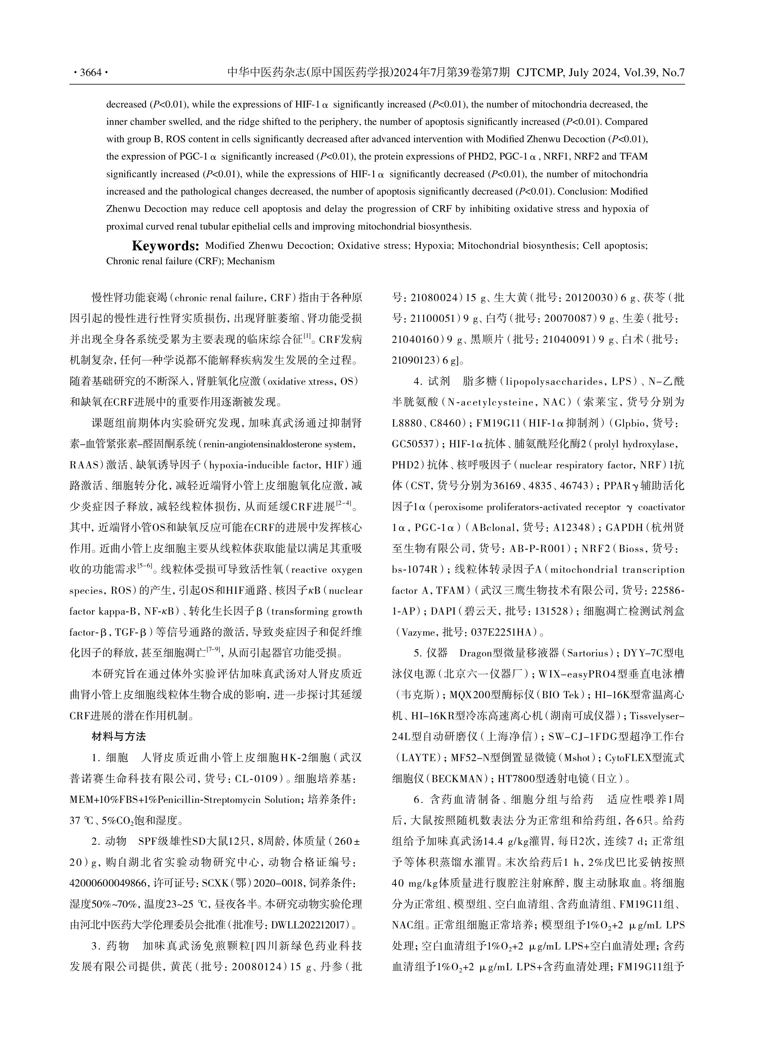 基于氧化应激和缺氧探讨加味真武汤对 HK-2细胞线粒体生物合成的影响